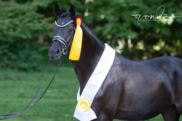 Bei der Bundesstutenschau 2025 in Darmstadt Kranichstein gab es zahlreiche Trakehner Stuten von herausragender Qualität zu bewundern. Um so höher ist der Klassensieg (5jährige) der wunderschönen MA JOLIE a.d Ma Petite Fleur v. Hertug einzuschätzen. Die Tochter unseres SPEEDWAY konnte sich schon 2023 den Titel der Siegerstute bei der zentralen Eintragung in Rheinland-Pfalz sichern. Wir gratulieren der BG Engel (Riol) ganz